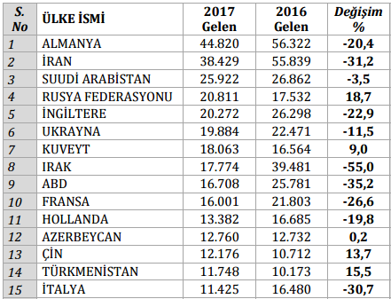 2017 yılının ilk ayında İstanbul’a gelen yabancıların ülkelere göre dağılımı şu şekilde: